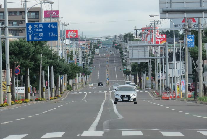 末広町の南岸通り、西4号線バス停前から野付牛自動車学校方向