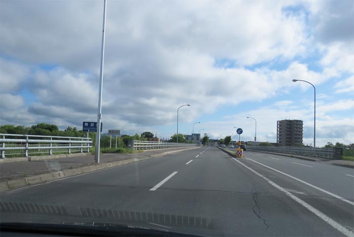 写真中央、堤防の向こうは無加川を挟んで工業技術センター前の西5号線南大通り交差点