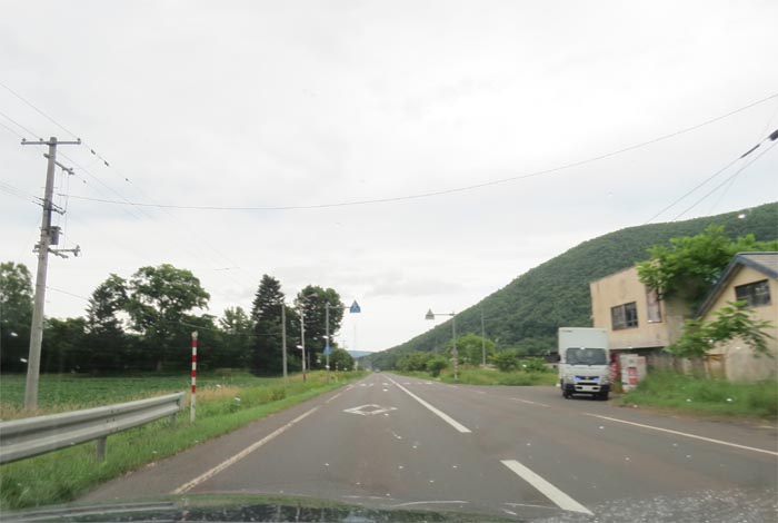 午後2時20分、国道242号、金華峠頂上側から下りで生田原の清里方向