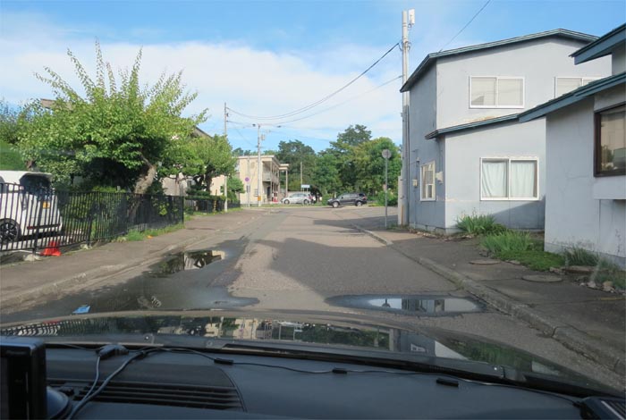 午前7時40分、松浦水産駐車場裏の通りを北3条通り側から北4条通り方向