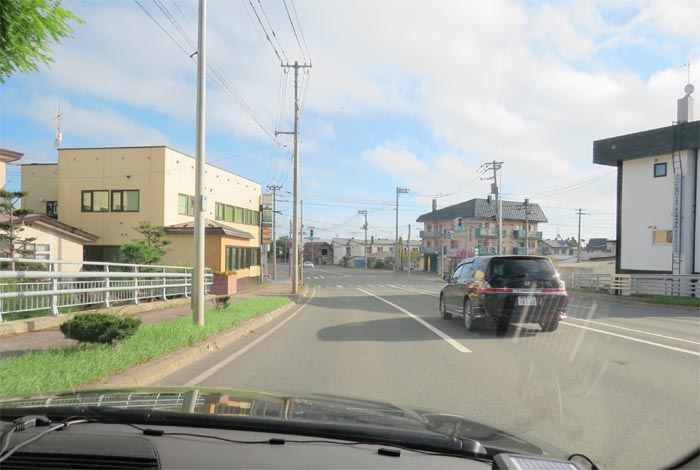 交差点から奥が無加川の右岸堤防で写真奥が国道39号方向
