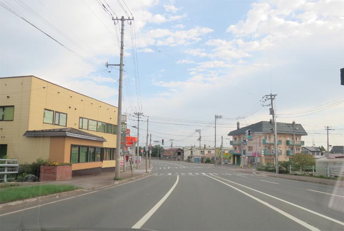 南岸通り、野付牛自動車学校前、奥がとん田通りの交差点