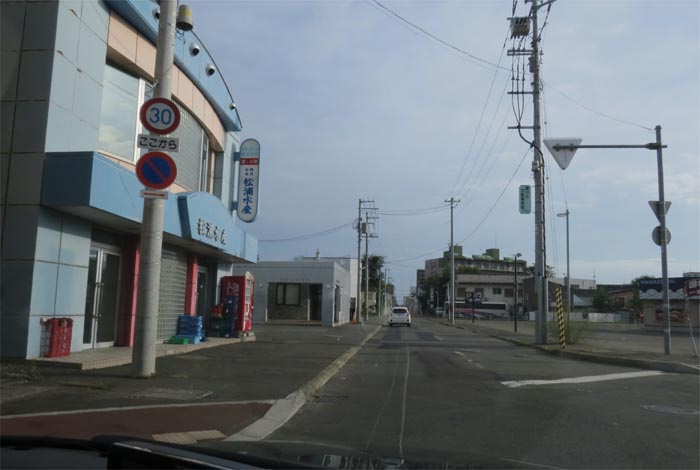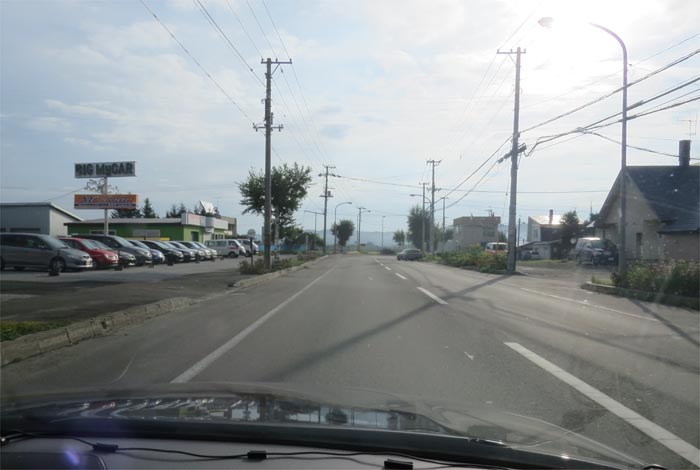 末広町の南岸通り、西4号線バス停前から野付牛自動車学校方向