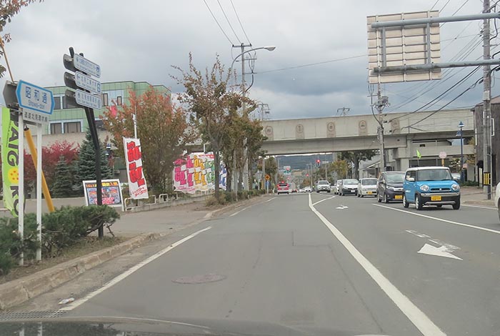 昭和通りのJR高架橋下から北見大橋方向