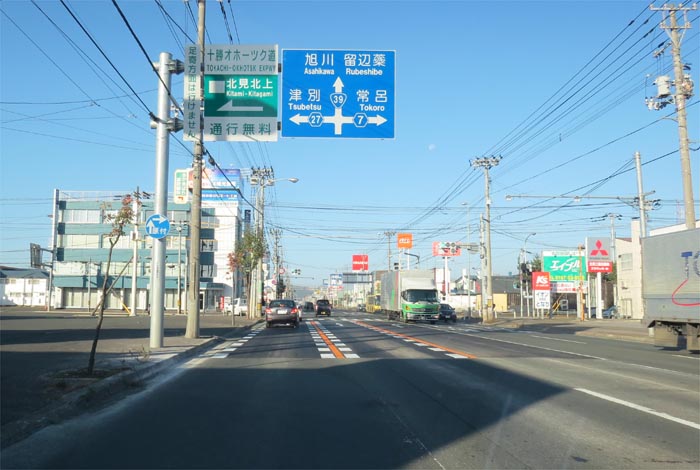 国道39号、北見トヨペット前からとん田通り交差点方向