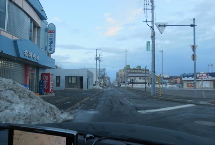 末広町の南岸通り、西4号線バス停前から野付牛自動車学校方向