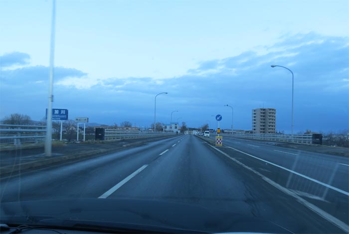 写真中央、堤防の向こうは無加川を挟んで工業技術センター前の西5号線南大通り交差点