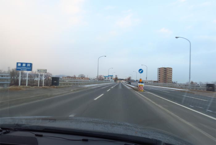 写真中央、堤防の向こうは無加川を挟んで工業技術センター前の西5号線南大通り交差点