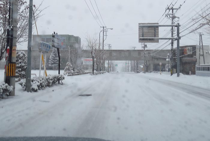 前方がJR石北本線高架橋、写真右が北見駅方向