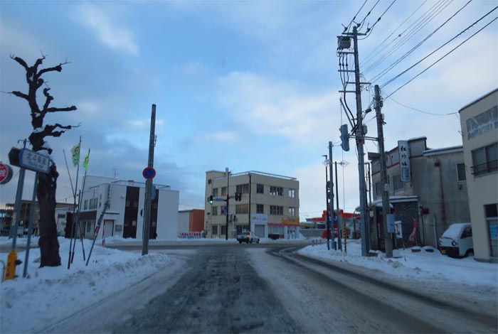 午前7時40分、松浦水産駐車場裏の通りを北3条通り側から北4条通り方向