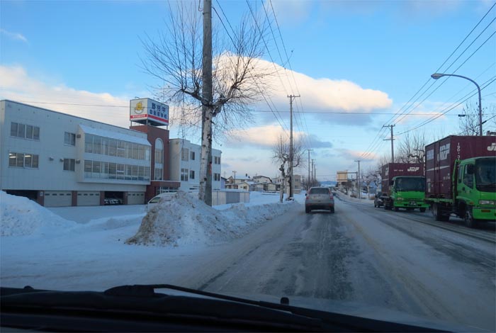 午前7時50分、南岸通り、野付牛自動車学校前から無加川町方向