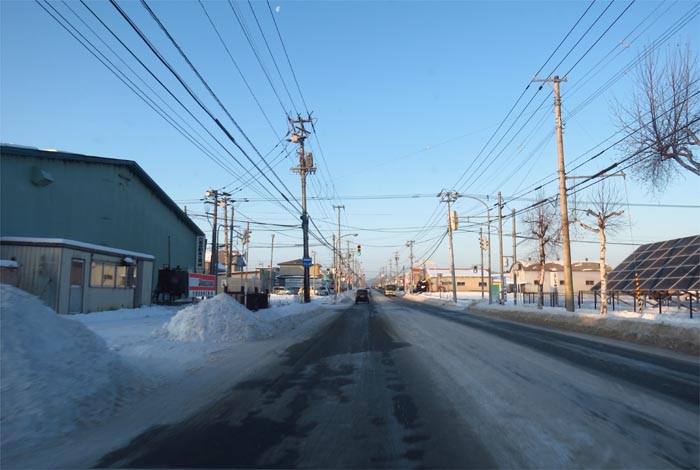 午前7時50分、南岸通り、野付牛自動車学校前から無加川町方向