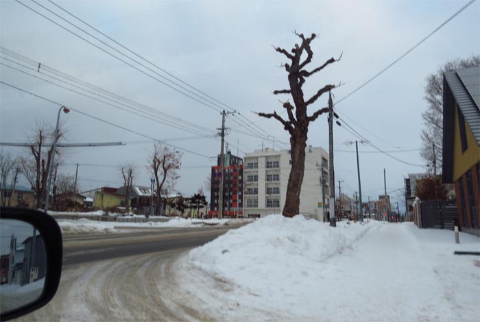 午前7時40分、松浦水産駐車場裏の通りを北3条通り側から北4条通り方向