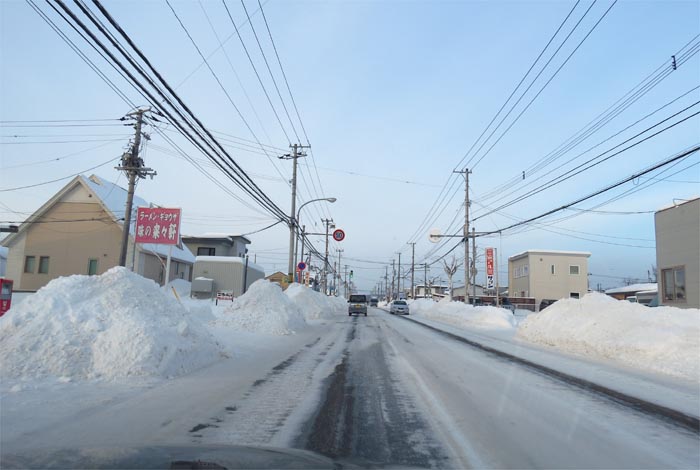午前7時50分、南岸通り、野付牛自動車学校前から無加川町方向