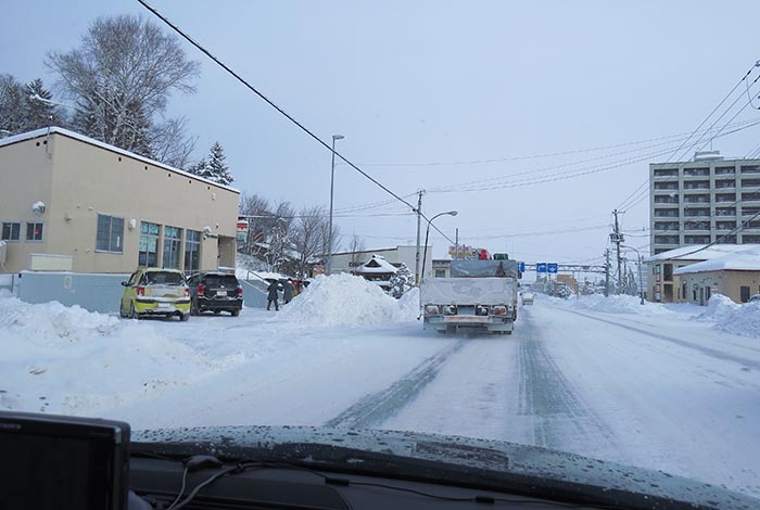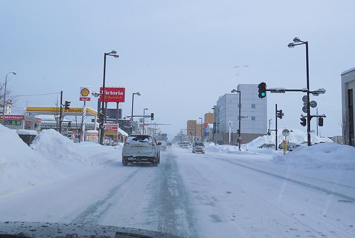 午前9時20分、国道39号の五差路から左は石北峠・旭川・札幌方面