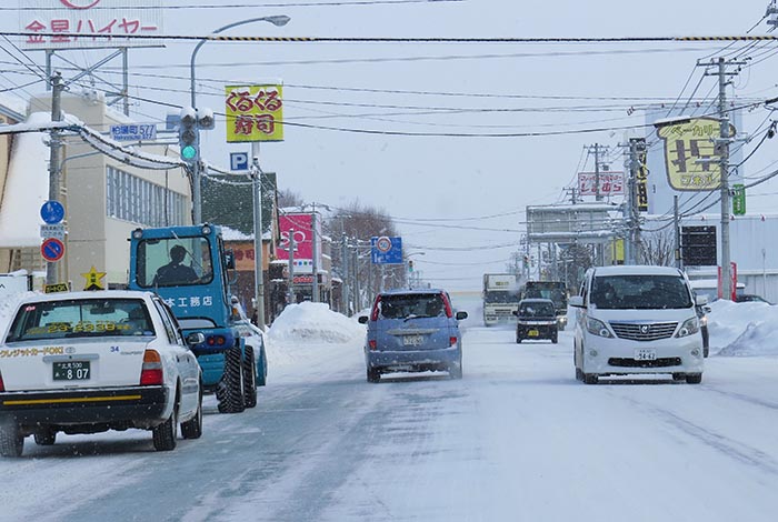 国道39号、東6号線昭和通り交差点から奥は端野、美幌、網走、知床方面