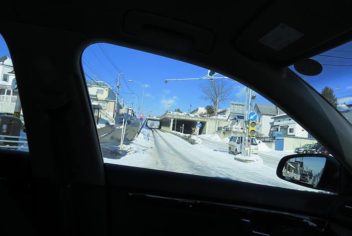 国道39号、北見神社の鳥居前から東9丁目歩道橋方向