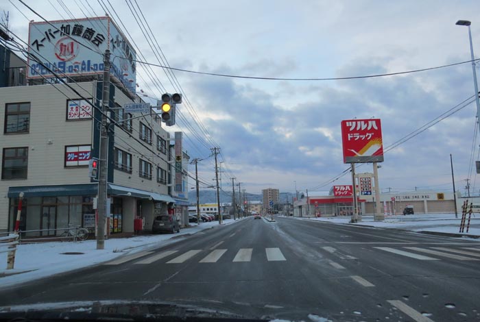 とん田通り、北見中央病院から南大通り交差点方向