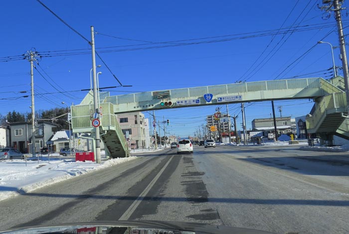 国道39号、北見神社の鳥居前から東9丁目歩道橋方向