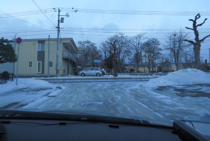 午前7時30分、松浦水産駐車場裏の通りを北3条通り側から北4条通り方向
