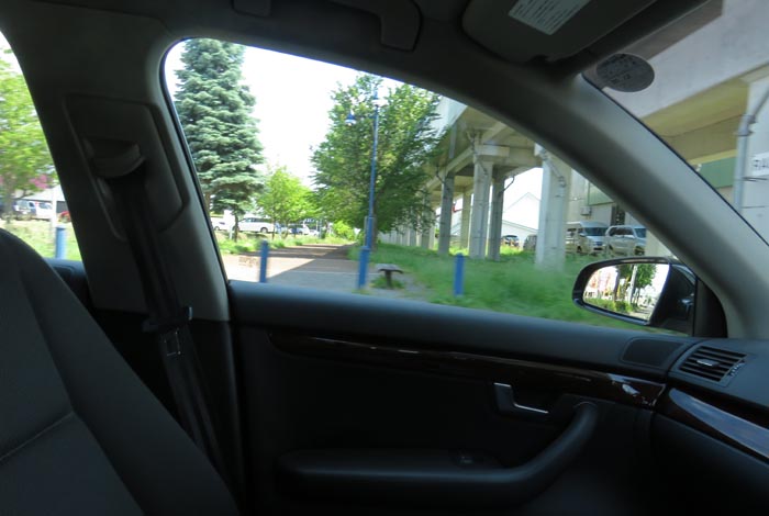 前方がJR石北本線高架橋、写真右が北見駅方向
