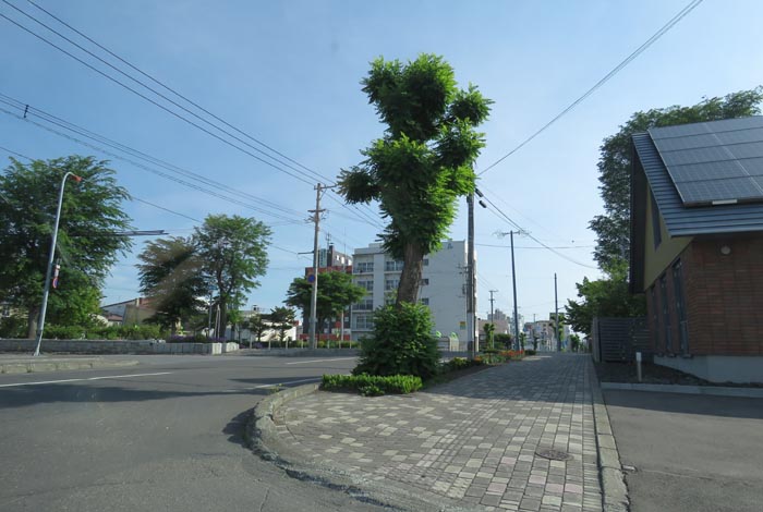 午前7時30分、松浦水産駐車場裏の通りを北3条通り側から北4条通り方向