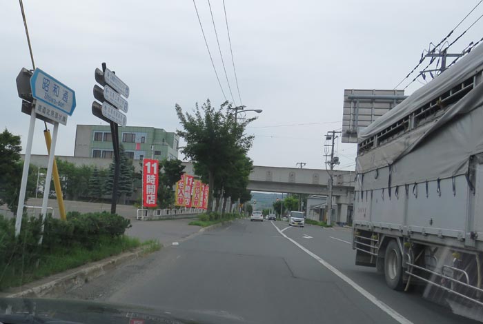 前方がJR石北本線高架橋、写真右が北見駅方向