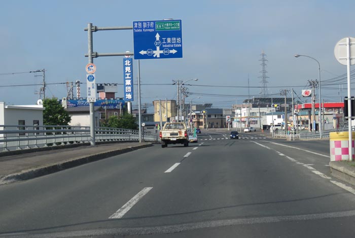 とん田通り、無加川橋を渡り錦町の南岸通り交差点交差点
