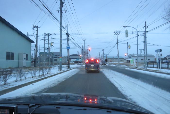 午前7時前、南岸通り、野付牛自動車学校前から無加川町方向