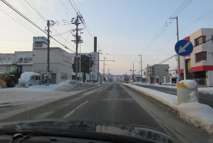 午前6時50分、西3号線とん田通りの北見中央病院前から無加川橋方向