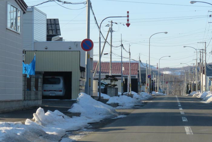 産岸通りから左折して西5号線のバス停前から北光通り方向