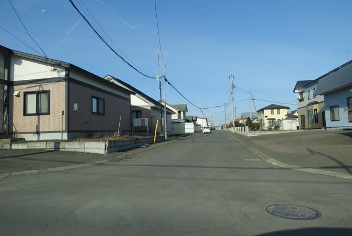 産岸通りから左折して西5号線のバス停前から北光通り方向