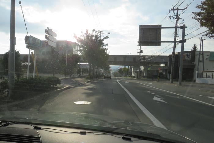 前方がJR石北本線高架橋、写真右が北見駅方向