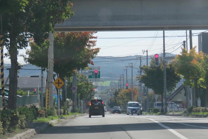 前方がJR石北本線高架橋、写真右が北見駅方向