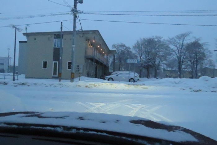 午前6時40分、松浦水産駐車場裏の通りを北3条通り側から北4条通り方向