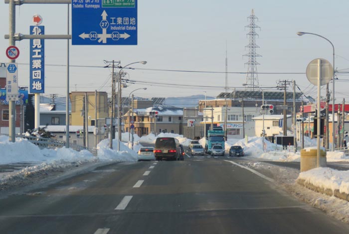 午前6時50分、西3号線とん田通りの北見中央病院前から無加川橋方向