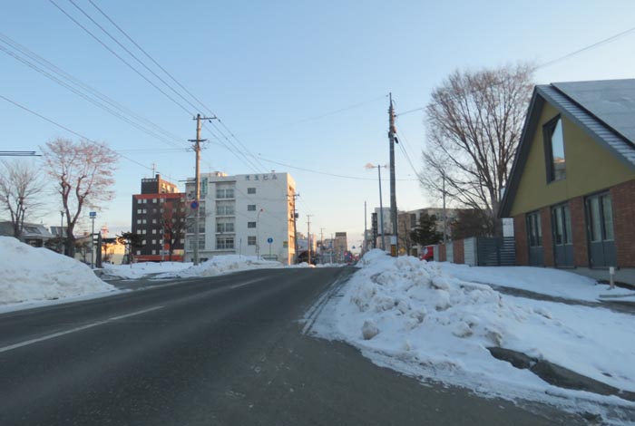 午前6時20分、松浦水産駐車場裏の通りを北3条通り側から北4条通り方向
