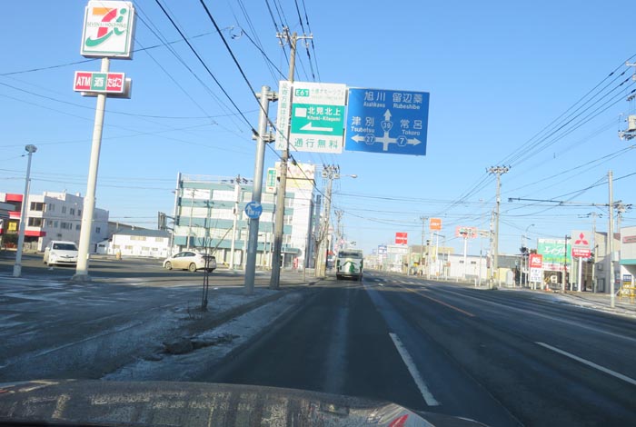 国道39号、北見トヨペット前からとん田通り交差点方向