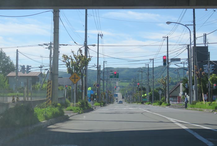 前方がJR石北本線高架橋、写真右が北見駅方向