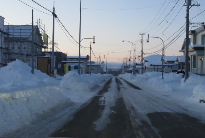 産岸通りから左折して西5号線のバス停前から北光通り方向