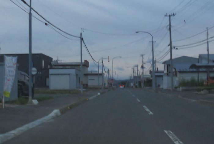 産岸通りから左折して西5号線のバス停前から北光通り交差点方向