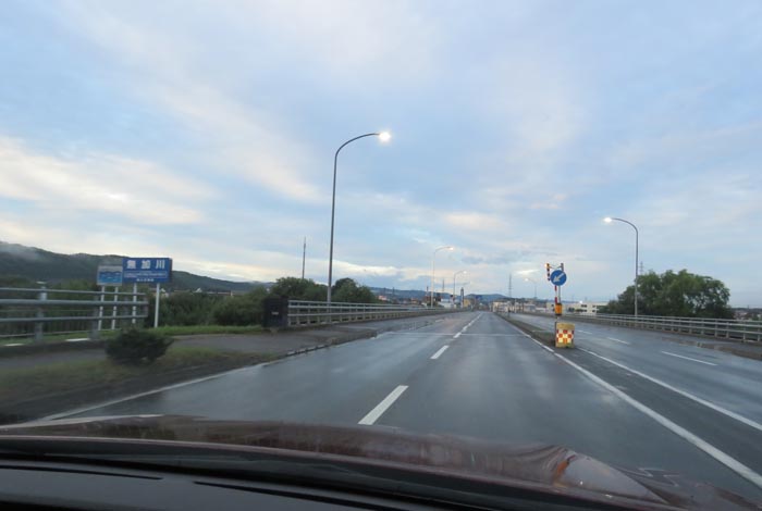 とん田通り、無加川橋を渡り錦町の南岸通り交差点