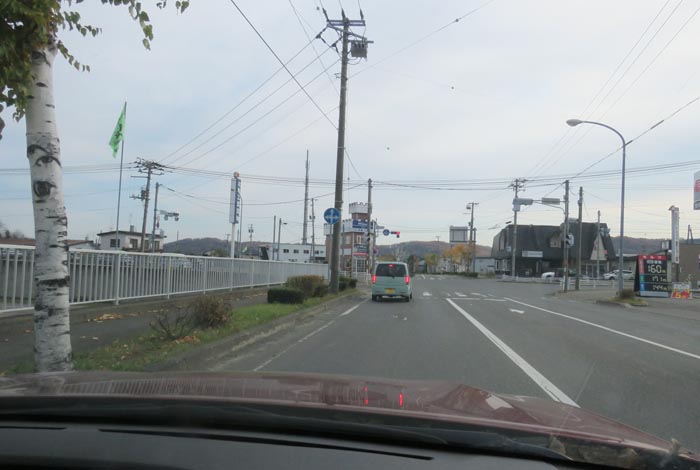 南岸通り、野付牛自動車学校前、前方はとん田通りの交差点