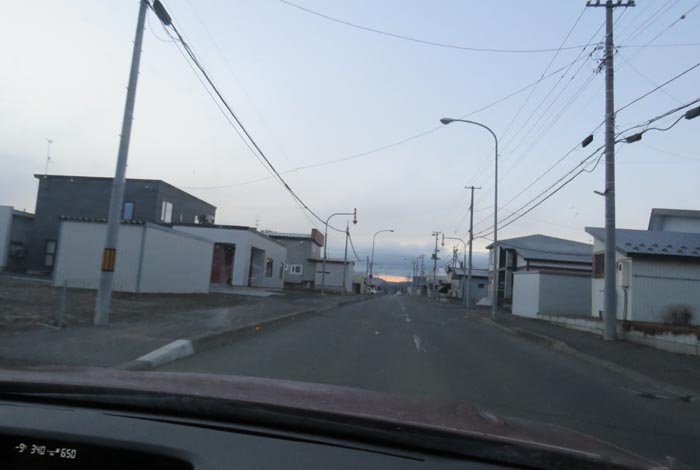 産岸通りから左折して西5号線のバス停前から北光通り交差点方向
