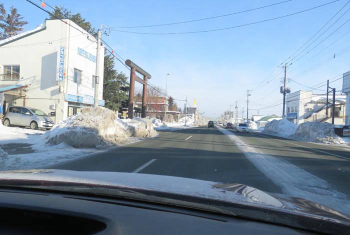 国道39号、北見神社の鳥居前から東9丁目歩道橋方向