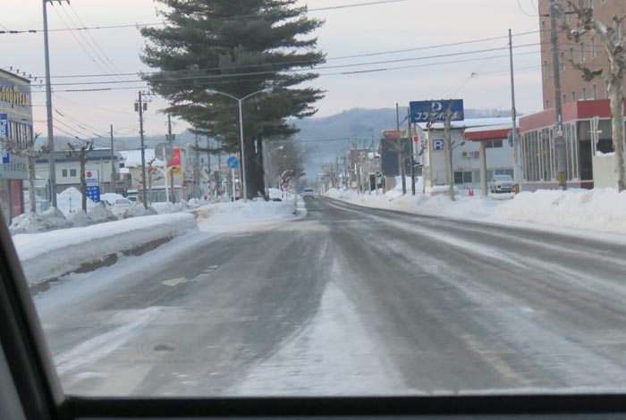 午前6時50分、北4条通りの国道39号交差点を右折で緑園通り方向