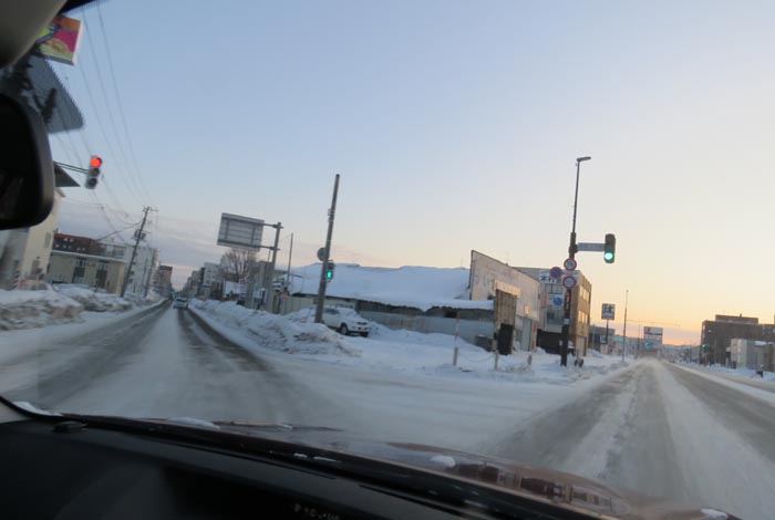 午前6時40分、西5号線、前方は南岸通りの交差点