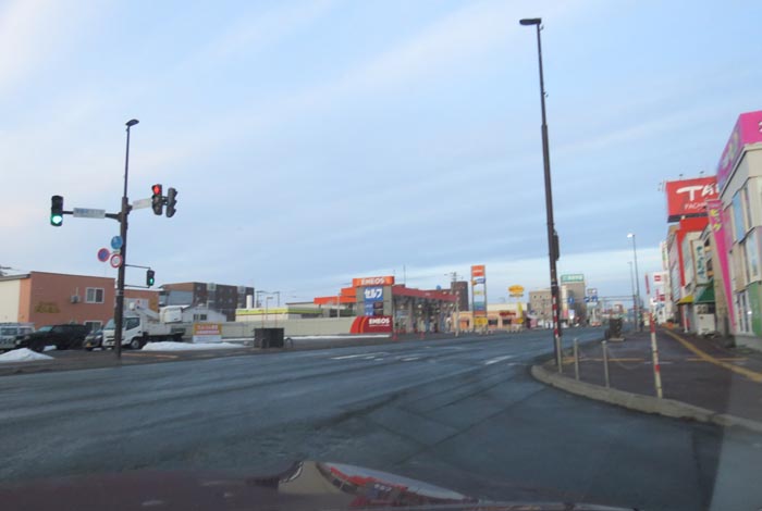 午前5時50分、北4条通りの国道39号交差点を右折で緑園通り方向