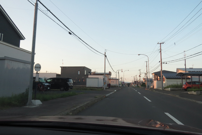 産岸通りから左折して西5号線のバス停前から北光通り交差点方向