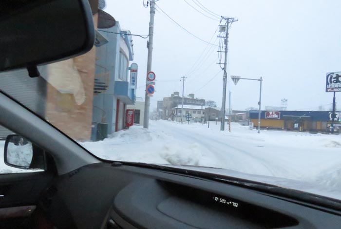 末広町の南岸通り、西4号線バス停前から野付牛自動車学校方向